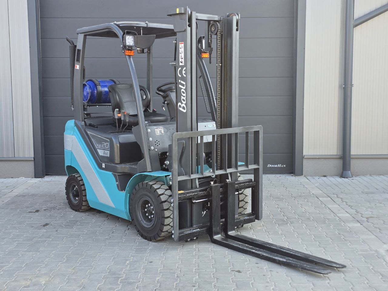 Új targonca, 7,8 üzemórával! 2 t teherbírású Baoli KBG 20+ típusú gázüzemű targonca eladó. Felszereltség: 3 hengeres DEUTZ gázüzemű ipari motor, hagyományos hidrodinamikus (wandler) meghajtás, 3.3 méterre emelő duplex (kéttagú) oszlop, Cascade villa oldalmozgató, tömör gumik, munkalámpa, hátrameneti hangjelzés, tető, CE bizonylat, kezelési utasítás. Gyártási dátum: 2023.01.10., Gyári szám: B16004L00087.