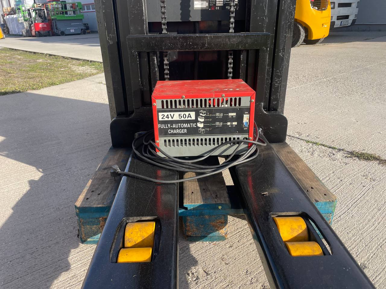 1.2 tonna teherbírású, 3 méterre emelő duplex (kéttagú) oszloppal szerelt, HELI CDD12 típusú, 2019-es évjáratú elektromos gyalogkíséretű targonca eladó. Automata akkumulátor töltő, 1.150mm hosszú emelővillák, Jó műszaki állapot, új görgők.