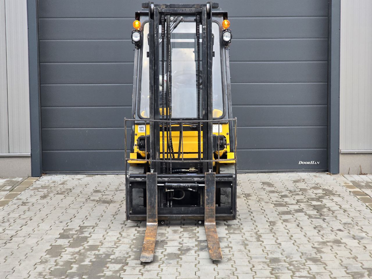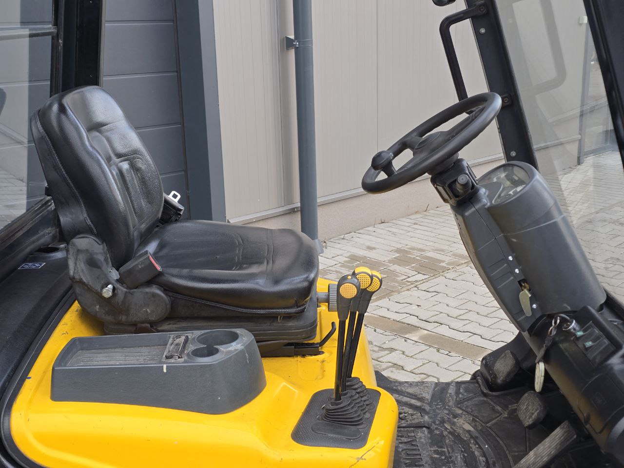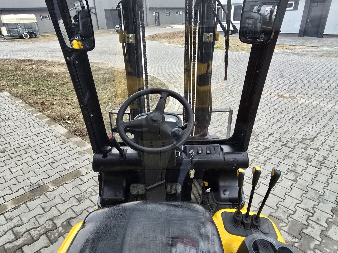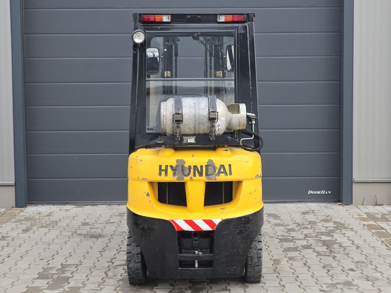 2 t teherbírású, 3.3 méterre emelő, gázüzemű HYUNDAI 20LA-7 típusú targonca eladó. Felszereltség: 4 hengeres HYUNDAI gázüzemű motor, hagyományos hidrodinamikus (wandler) meghajtás, 3.3 méterre emelő duplex (kéttagú) oszlop, villa oldalmozgató,3 szekciós hidraulika vezérlőtömb, tömör gumik, munkalámpa, hátrameneti hangjelzés, első-hátsó szélvédő, tető,